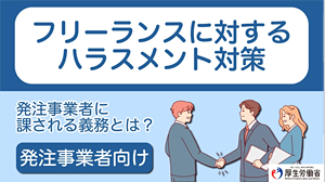 フリーランス・事業者間取引適正化等法で定めるハラスメント対策に係る体制整備義務などについて、発注事業者はどのような対応をとらなければならないのか、また、実際にフリーランスの方からハラスメントに関する相談があった場合の対応の流れや留意点などについて、学ぶことができる動画を厚生労働省HPにおいて掲載しています。